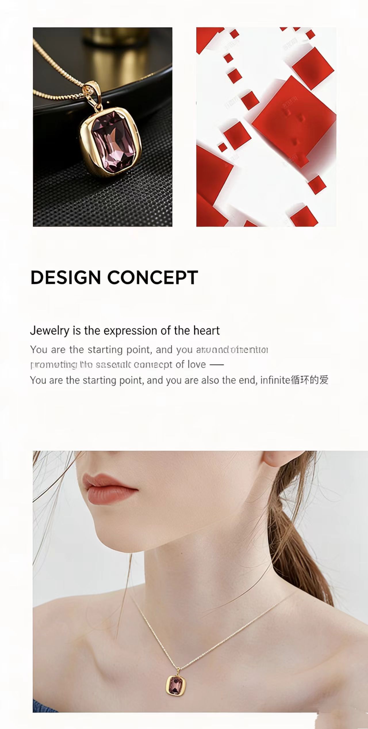 Vintage Square Zircon Pendant Necklace, Gold Plated Sweater Chain, Elegant Cubic Zirconia Necklace for Women